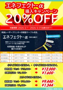 平素はエネフェクト―αをご愛用くださり誠にありがとうございます。 2026年2月1日~3月31日までの期間限定でエネフェクト―αの導入キャンペーンを開催致します! キャンペーン期間中はエネフェクト―αを通常よりお安いご奉仕価格にてご提供させていただきます。 是非この機会にお求めくださいますよう、よろしくお願い致します。 納期状況等につきましては営業にお問い合わせください。 ...