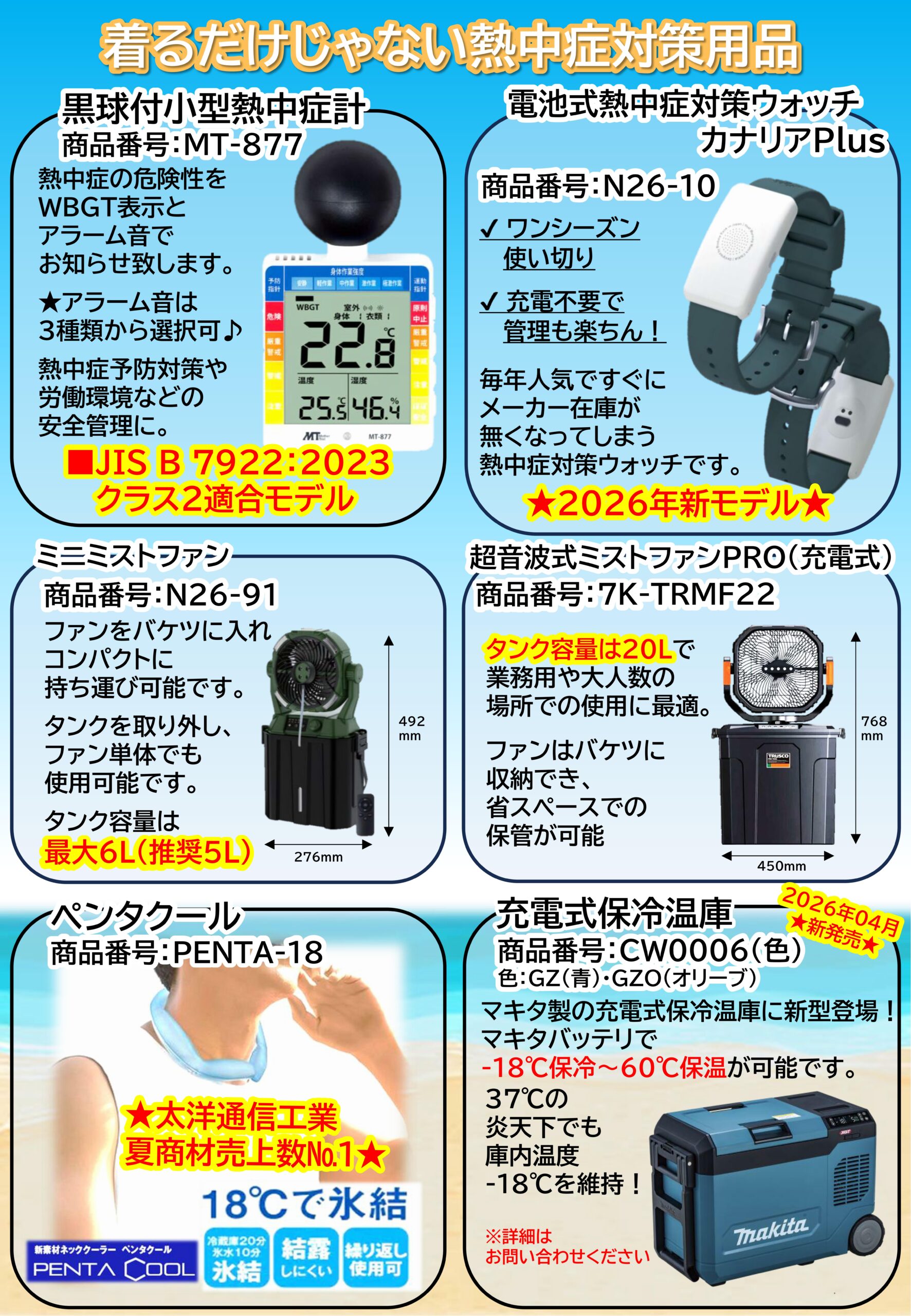 今年も太洋通信工業ではさまざまな熱中症対策グッズを取扱しております。