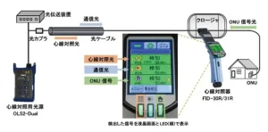 「心線対照光」、「通信光」、「ONU 信号光」の有無を簡単かつ迅速に検出する装置です(※)。